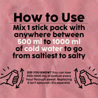 MIX 1 STICK PACK WITH ANYWHERE FROM 500ML TO 1000ML OF WATER TO FIND THE RIGHT TASTE THAT YOU LIKE.